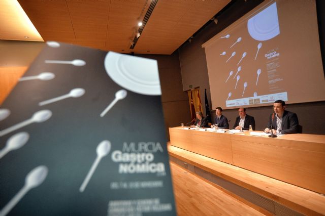 Del 7 al 10 de noviembre, el Auditorio y Centro de Congresos Víctor Villegas de Murcia será el punto de encuentro de los profesionales y las primeras marcas de hostelería con los aficionados a la gastronomía. Así lo han dado a conocer el director de 'La Verdad', Alberto Aguirre de Cárcer; el director del congreso, Sergio Gallego; el consejero de Industria, Turismo, Empresa e Innovación, Juan Carlos Ruiz y el consejero de Educación, Cultura y Universidades, Pedro Antonio Sánchez en la presentación de Murcia Gastronómica, celebrada en el Centro de Cualificación Turística de Murcia.