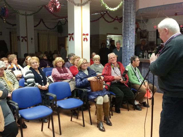 La actuación de la peña huertana la Zaranda marcó el comienzo de la Navidad en el centro social de mayores de San Andrés-San Antolín.