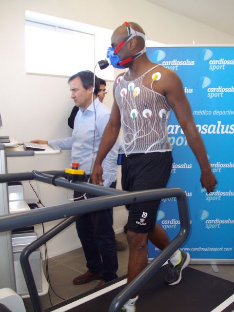 Este mediodía, bajo la supervisión del cardiólogo de Cardiosalus, Domingo Pascual, y el preparador físico del conjunto murciano, Diego Villarejo, realizó las pruebas de esfuerzo, las que pasó con nota por su buen estado de forma.