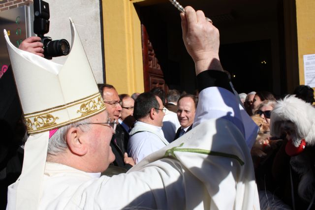 Al término de la Eucaristía, Cámara ha estado presente en la bendición de mascotas oficiada en esta ocasión por el Obispo, José Manuel Lorca Planes, a las puertas de la Ermita de San Antón, en la que, como es habitual, se han dado cita numerosos vecinos acompañados por sus animales, sobre todo, perros de diferentes razas. Tras la Eucaristía, el Obispo ha rociado con agua bendita a todos los animales congregados frente a la parroquia.