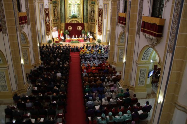 El Templo del Monasterio de Los Jerónimos ha sido el escenario de la investidura de Thomas Bach, presidente del Comité Olímpico Internacional, como Doctor Honoris Causa. Más de mil personas han presenciado el acto, entre ellos personalidades de la vida política, de la cultura, del mundo académico y, por supuesto, del deporte. Presidió el acto José Luis Mendoza, presidente de la UCAM, acompañado por Pedro Antonio Sánchez, consejero de Educación, Cultura y Universidades de la Región de Murcia; Alejandro Blanco, presidente del Comité Olímpico Español; Miguel Ángel Cámara, alcalde de Murcia; Josefina García, rectora de la UCAM; Marisol Casado, miembro del Comité Ejecutivo del COI; y Antonio Sánchez Pato, decano de la Facultad de Deporte.
