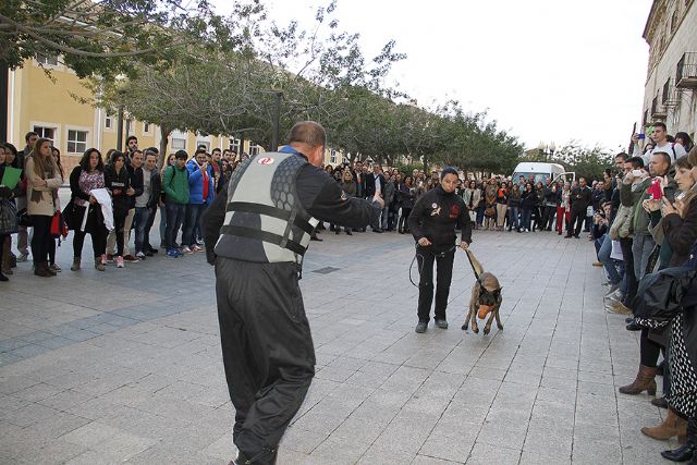 Durante la jornada de la tarde, miembros del proyecto ESCAN -para la recuperación de víctimas de violencia de género y su protección ante posibles agresiones físicas- han realizado en el Campus de Los Jerónimos una exhibición con perros adiestrados.