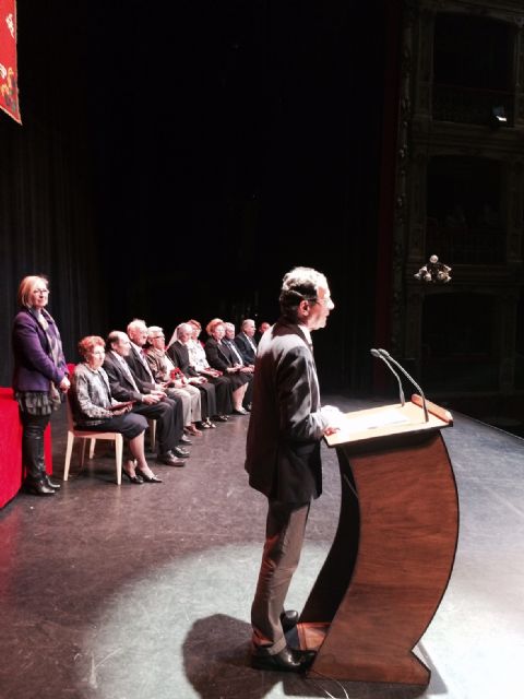 El Alcalde, Miguel Ángel Cámara, acompañado por la Concejal de Bienestar Social, Maruja Pelegrín, ha presidido esta tarde el homenaje a 11 mayores del Municipio de Murcia que se han distinguido, a lo largo de sus vidas, por la entrega a la Ciudad y a sus ciudadanos. El acto, que ha tenido lugar en el Teatro Romea, ha reunido a varios centenares de familiares y amigos.