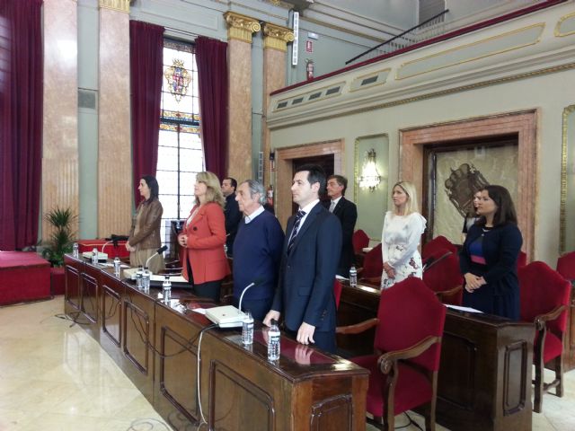 El Pleno del Ayuntamiento de Murcia ha guardado esta mañana un minuto de silencio en memoria de las víctimas del naufragio en el Mediterráneo, que sucedió hace dos semanas; y las víctimas del terremoto de Nepal.