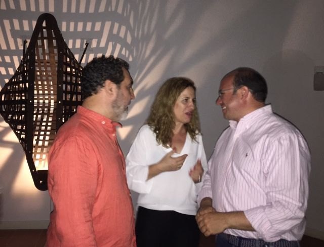 El consejero de Educación, Cultura y Universidades, Pedro Antonio Sánchez, el artista y la comisaria de la muestra, Julieta de Haro, asistieron a la apertura junto a numerosos profesionales del mundo de la cultura y otros invitados.