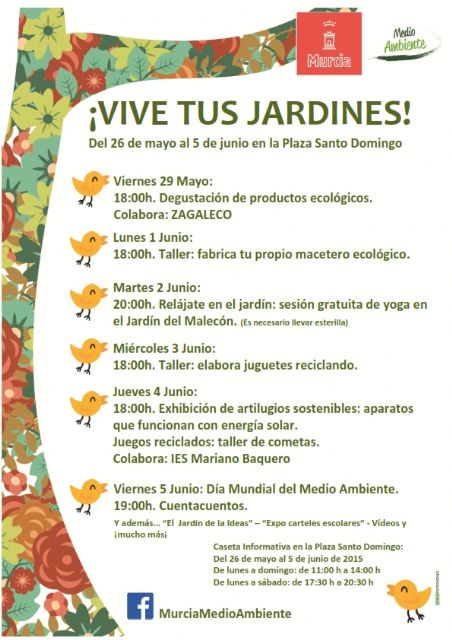 El Ayuntamiento de Murcia continúa impulsando su labor de concienciación sobre el cuidado al Entorno y celebra la jornada de Día Mundial del Medio Ambiente con diversas actividades bajo el lema “¡Vive tus jardines!”.