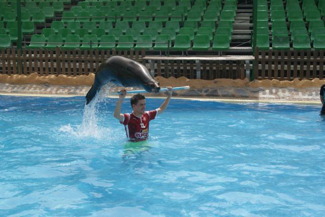 El ala-pívot y capitán de la Selección Croata, Dário Marinovic, ha sido presentado esta mañana en el parque Terra Natura Murcia como nuevo jugador de ElPozo Murcia FS acompañado del Director General del Club, Fran Serrejón. El jugador, tras comparecer ante los medios de comunicación, se ha atrevido a jugar con 'Wanda' el león marino del parque acuático.