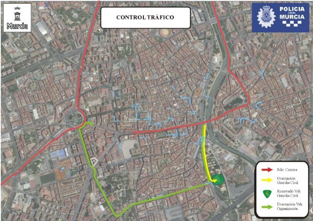 También se verán afectadas las rutas de los autobuses urbanos de Transportes de Murcia. Las líneas C1, C2, R12, R14, R17, R20 y R80 circularán con normalidad hasta las 13,30 horas, aproximadamente, y a partir de entonces incorporarán modificaciones a sus itinerarios habituales.