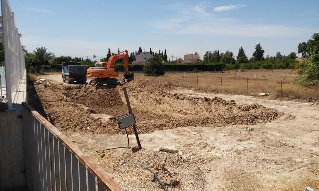 AHORA MURCIA ha solicitado al alcalde de Murcia y a su concejal de Urbanismo y Huerta que se revisen las licencias de edificación en el entorno del Paseo del Malecón y que se le informe sobre las obras que han comenzado en un huerto situado frente a la estatua de don José María Muñoz, ya que considera que algunas pueden ser contrarias al Plan de Ordenación Urbana (PGOU, actual PGMO) de Murcia. Al final del Paseo puede verse maquinaria pesada removiendo el terreno en lo que parece ser la excavación de los cimientos de una obra.