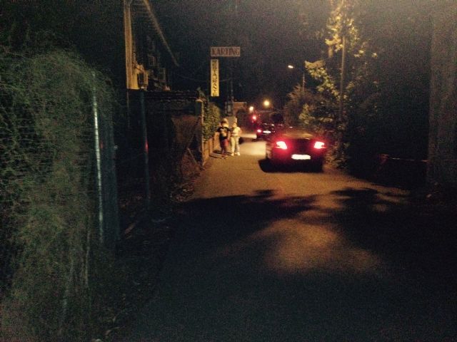 El Camino de Enmedio es una vía de comunicación de la pedanía de Puente Tocinos con la parte posterior del recinto de atracciones de la Feria, y que cruza la Avenida Miguel Induráin. Estos días se convierte en zona de gran afluencia de jóvenes y familias con niños que se dirigen cada noche a disfrutar de las instalaciones. En la zona confluyen coches que circulan en ambos sentidos y peatones que invaden la calzada ante la inexistencia de aceras, poniendo en riesgo su seguridad. A ello se suma la falta de iluminación pública, por lo que los vehículos apenas aprecian a los viandantes hasta que están a escasos metros de los mismos, lo que provoca frenazos y giros peligrosos.