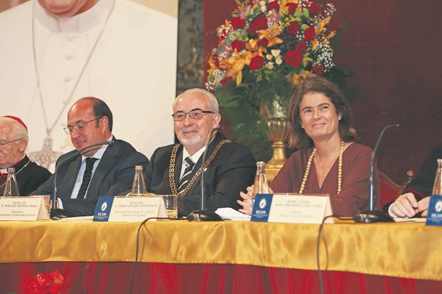 La Universidad Católica San Antonio de Murcia ha celebrado esta mañana el acto oficial de apertura del curso académico 2015-2016. La secretaria de Estado de Justicia, Carmen Sánchez-Cortés ha impartido la lección inaugural titulada 'Reformas para un cambio necesario'. Durante la misma ha desgranado las principales líneas del Programa Nacional de Reformas llevado a cabo por el Gobierno de España en los últimos años. "En el epicentro de la crisis más brutal sufrida jamás en generaciones y haciendo estragos en todos los órdenes de nuestra vida, tomamos las riendas de un país literalmente catatónico", ha afirmado, y ha señalado que gracias a las reformas de la Justicia que han llevado a cabo, "hemos hecho de la seguridad jurídica un valor añadido de la Marca España, cuyo prestigio crece cada día, y si ha sido así es porque hemos sabido dar con las tres piezas clave que había que reformar: la gestión, las leyes y una lucha implacable contra la corrupción".