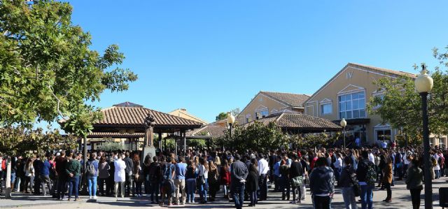 A las doce en punto, en la Plaza de las Pérgolas del Campus de Los Jerónimos se ha guardado un minuto de silencio y posteriormente se ha invitado a los que lo desearan a unirse a un Padrenuestro por el alma de las víctimas de los atentados.