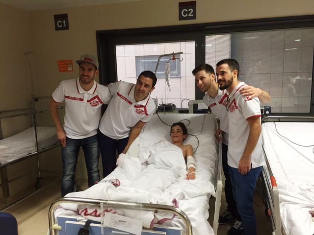 Los jugadores del conjunto murciano han compartido la jornada con los niños y niñas ingresados y también con los que acudían a recibir tratamiento en el Hospital de Día. Una grata sorpresa para alegrarles su estancia en el centro hospitalario. El mejor partido disputado y muchas emociones vividas, por las que siempre debería ser Navidad.