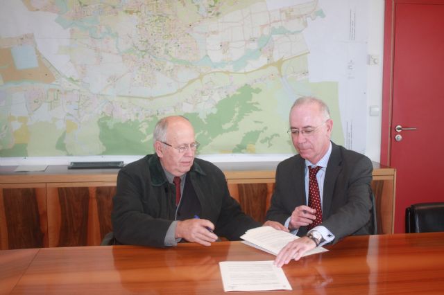 El concejal de Urbanismo, Medio Ambiente y Huerta, Antonio Navarro Corchón, ha firmado esta mañana un convenio de colaboración con el presidente de la Junta de Hacendados de Murcia, Diego Frutos que establece las líneas de colaboración entre ambos para impulsar, desde los ámbitos patrimonial, turístico, paisajístico y cultural, el Plan de Acción de la Huerta de Murcia.