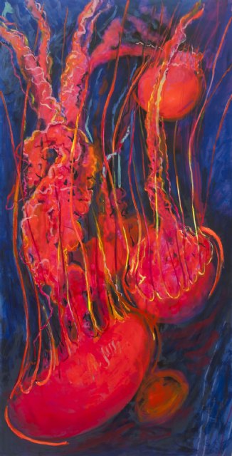 La exposición se ha adaptado al requerimiento de la iglesia de San Antonio (Murcia), que cuenta con espacios altos y sobre cuyas paredes, los artistas de MUHER han seleccionado varias  piezas de gran formato (3x2 metros) que muestran un paisaje natural onírico. Como colofón, se ha creado una fascinante instalación acuática para la ocasión, que recordará la necesidad de la limpieza del agua en nuestra región, con proyecciónes y un mural en tres dimensiones con fondos marinos de medusas, parte importante de nuestro ecosistema en tanto que filtran los mares.