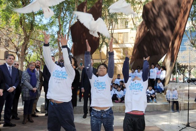 José Ballesta presidió el acto organizado por el Ayuntamiento de Murcia celebrado en la Plaza de la Paz, en el que se rindió homenaje a las víctimas del terrorismo en Murcia y al que también asistió la consejera de Presidencia, María Dolores Pagán.