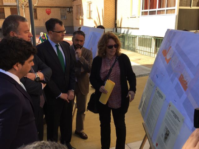 Ballesta: "El proyecto tiene un componente urbanístico, pero sobre todo social, fomentando la convivencia vecinal y la integración, y mejorando la calidad de vida de las familias residentes en este barrio de El Palmar". Se trata de una ambiciosa actuación en la que el Ayuntamiento, el Ministerio de Fomento y la Comunidad trabajan de la mano y que incluye la mejora de 329 viviendas así como de las áreas comunes, tres plazas y zonas peatonales.