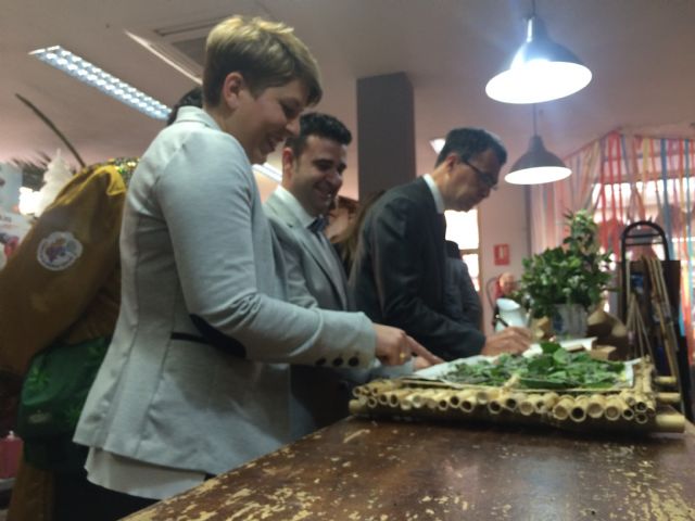 La consejera de Cultura y portavoz del Gobierno regional, Noelia Arroyo, y el alcalde de Murcia, José Ballesta, visitaron esta mañana los escaparates especiales de la Ferretería San Antón en los que el comerciante homenajea las Fiestas de Primavera. En concreto, uno de ellos está dedicado al Bando de la huerta y el otro a los Sardineros. Asimismo, los vecinos de San Antón pudieron disfrutar los tradicionales buñuelos con chocolate.