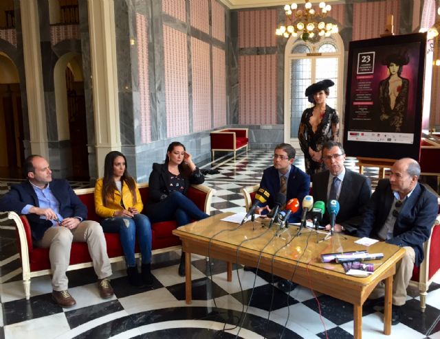 La presentación de la XXIII edición del festival, que ha tenido lugar esta mañana en el Salón de los Espejos del Romea, ha contado con la presencia del alcalde de Murcia, José Ballesta, los artistas Marina Heredia, Alba Heredia y Curro Piñana; la autora del cartel, Inma Escudero; la directora del desfile de moda flamenca, la diseñadora Rosa Ruiz; y el director de la Cumbre, Antonio Parra.