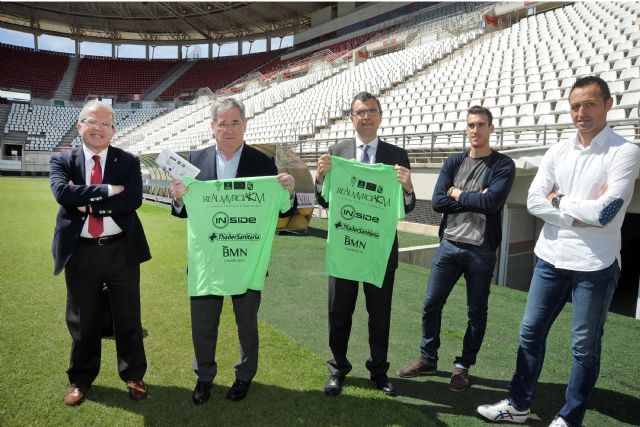 El alcalde de Murcia, José Ballesta, y el presidente del Real Murcia, Guillermo Martínez Abarca, presentaron hoy la carrera ‘Real Murcia KM’, un evento solidario en apoyo al club grana, que espera reunir a una multitud de corredores el próximo domingo, día 8 de mayo, en las inmediaciones del estadio Nueva Condomina.