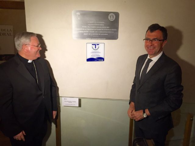 El Alcalde, José Ballesta, y el Obispo de la Diócesis de Cartagena, José Manuel Lorca Planes, acompañados por el concejal de Empleo, Turismo y Cultura, Jesús Pacheco, han hecho entrega esta mañana al Museo de la Catedral de la placa que acredita su compromiso con la Calidad Turística, en un acto al que han asistido algunos representantes de los 91 establecimientos y servicios que cuentan con esta distintivo