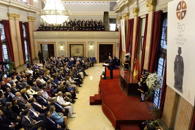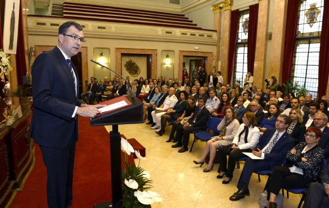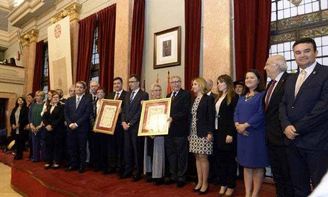Una multitudinaria y emotiva ceremonia rinde homenaje a los nuevos Hijos Predilectos de la Ciudad de Murcia, en el marco de la conmemoración del 750 aniversario del Concejo de Murcia. Ballesta: "La vida de un hombre pasa rápidamente, pero queda la huella de su trabajo que, unida a la que dejan los demás, forma el camino por el que ha de avanzar la humanidad".