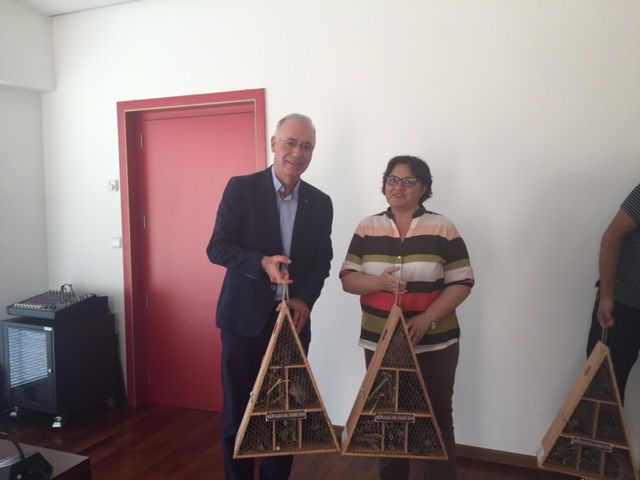 El concejal de Urbanismo, Medio Ambiente y Huerta, Antonio Navarro Corchón, ha hecho entrega de estos habitáculos para insectos a los Centros Escolares que han participado durante el curso académico en el Programa de Huertos Escolares.