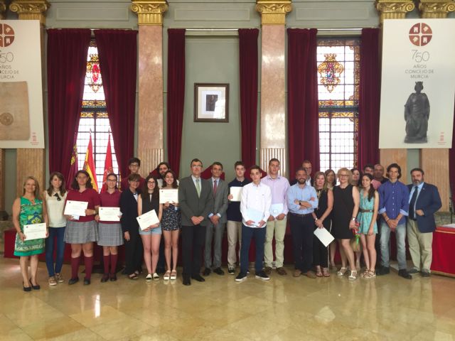 El alcalde de Murcia, José Ballesta, acompañado del presidente del Rotary Club Murcia Norte, José María Riquelme, y el concejal de Educación, Relaciones con las Universidades y Patrimonio, Rafael Gómez, hizo entrega de los premios de la V Yincana Rotaria, a los alumnos y profesores de los colegios ganadores de esta competición que este año tuvo como temática la 'Murcia Musulmana' y que promueve los valores de la amistad y el compañerismo, al tiempo que acerca a los jóvenes el patrimonio cultural e histórico de la ciudad de Murcia.