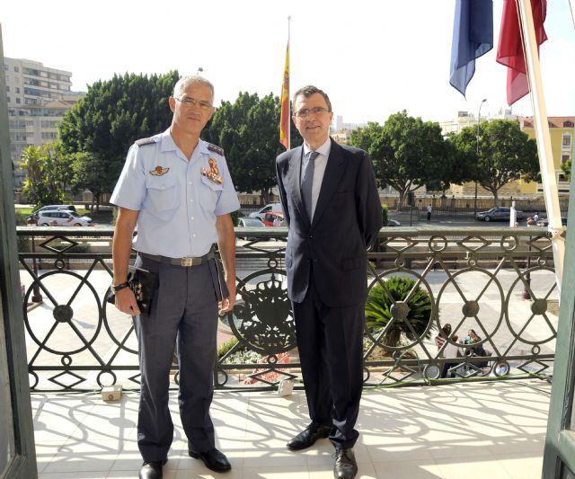 El alcalde de Murcia, José Ballesta, y el Coronel Director de la Academia General del Aire (AGA) de San Javier, Juan Pablo Sánchez de Lara, presentaron hoy el acto de Juramento Civil de la Bandera que se celebrará el domingo 30 de octubre, y que tendrá como protagonistas a los vecinos de Murcia, que podrán demostrar su fidelidad a la enseña nacional en un acto solemne, con motivo del 750 aniversario del Concejo de Murcia y las celebraciones con motivo de la Fiesta Nacional, con la participación de 140 miembros de la AGA y la Patrulla Águila.