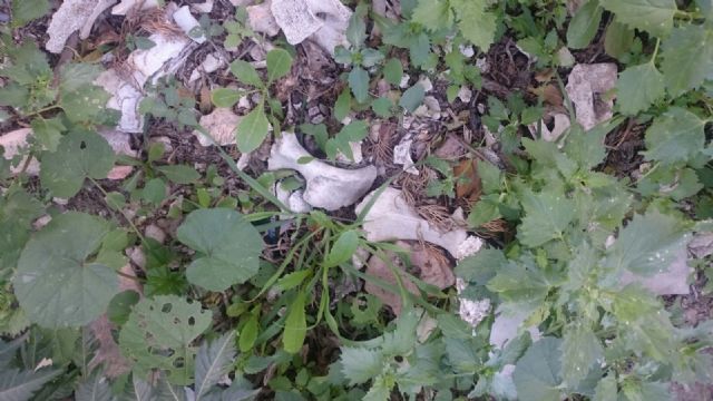 Unos jóvenes encontraron anoche unos restos óseos del siglo XIX en un solar municipal situado junto al Carril Torraos de la Albatalía, muy próximo al carril auxiliar de la autovía.