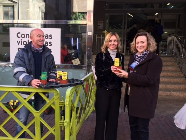 El Ayuntamiento de Murcia ha repartido mil plantas en distintas plazas de Abastos del municipio, con motivo de la celebración del Día Internacional contra la Violencia de Género, gracias a la Concejalía de Modernización de la Administración, Calidad Urbana y Participación, que dirige José Guillén.