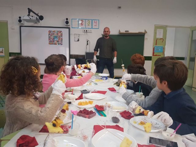 Durante el desarrollo de este taller, que ha tenido lugar en el CEIP San Pablo, al que ha asistido el concejal Rafael Gómez, se han elaborado recetas mezclando productos de distintos países, curiosidades y valor nutricional.