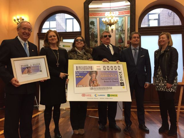 El concejal de Empleo, Turismo y Cultura, Jesús Pacheco, ha asistido esta mañana, en el Casino de Murcia, a la presentación del décimo dedicado a Santa María de la Arrixaca que por primera vez realiza la ONCE en colaboración con la Real y Antigua Hermandad de Devotos de Santa María de la Arrixaca.