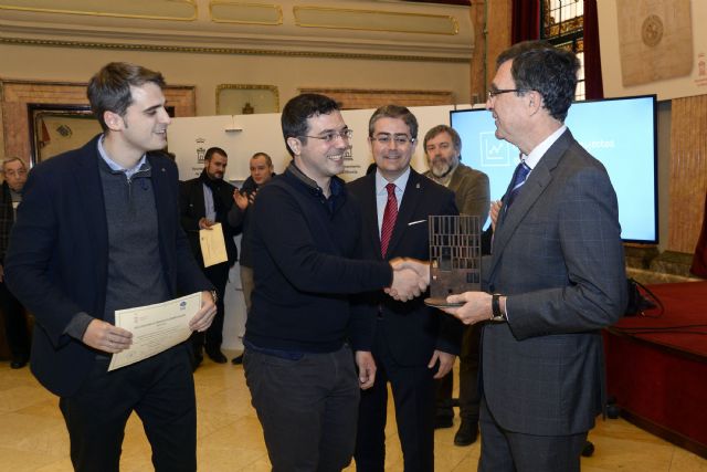Cerca de medio centenar de emprendedores murcianos fueron hoy distinguidos en el Salón de Plenos dentro de la XXIV edición del Concurso de Proyectos Empresariales, un certamen por el que el Ayuntamiento de Murcia ha hecho entrega de ayudas por un valor total de 60.000 euros destinados a apoyar el desarrollo de estas ideas de negocio gestadas en Murcia.