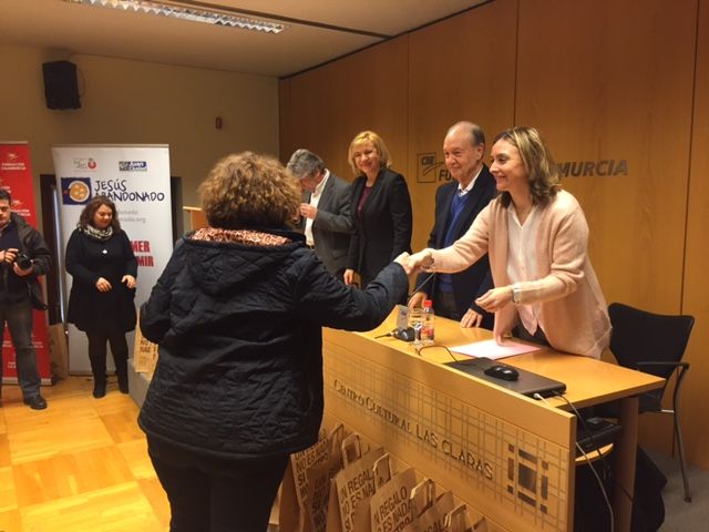 La concejal de Derechos Sociales, Conchita Ruiz Caballero, que ha entregado los diplomas durante un acto celebrado en el Centro Cultural Las Claras, de la Fundación Cajamurcia, junto a la consejera de Familia e Igualdad de Oportunidades, Violante Tomás, y José Moreno Espinosa, presidente de la Fundación Jesús Abandonado, ha manifestado que la Fundación “está presente para lograr la plena incorporación en el mercado laboral de este colectivo y la inclusión social de todas las personas en situación de necesidad”.