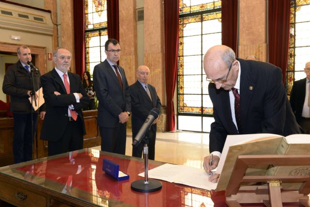 El alcalde de Murcia, José Ballesta, acompañado por el concejal de Hacienda y Contratación, Eduardo Martínez-Oliva, presidió esta mañana en el Salón de Plenos el acto de toma de posesión de los miembros del Consejo Económico Administrativo de Murcia, que renuevan sus puestos como vocales decisorios por un periodo de 5 años.