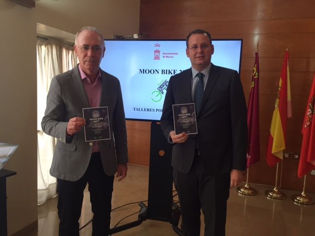 El concejal de Urbanismo, Medio Ambiente y Huerta, Antonio Navarro Corchón, acompañado del concejal de Modernización de la Administración, Calidad Urbana y Participación, José Guillén, ha presentado, a través de la Oficina de la Bicicleta, la tercera edición de las rutas en bicicleta ‘Moon Bike’, que invita a los murcianos a realizar recorridos por el municipio bajo la luna llena a partir del próximo 11 de febrero.