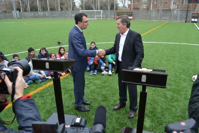 Por su parte, José Ballesta, alcalde de Murcia,  quiso expresar su agradecimiento a la Federación de Fútbol de la Región de Murcia por “la generosidad  que ha tenido con este Ayuntamiento con la donación de estos cincuenta y tres desfibriladores, que sumados a los ya instalados en nuestras instalaciones deportivas, cubren la práctica totalidad de los campos de fútbol y pabellones, tanto del casco urbano como de sus pedanías”. Ballesta también indicó que ya se preparan “quince cursos para formar a trescientas personas y también se va a hacer extensibles a los responsables de los clubes que utilizan estas instalaciones, y a los colegios, donde también puede ser necesario, a través de la Concejalía de Deporte y Salud, como medida de prevención”.