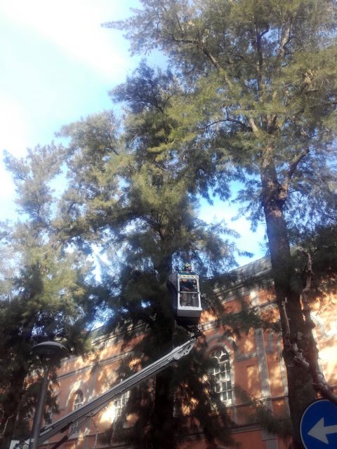 El Servicio de Parques y Jardines, dependiente de la Concejalía de Modernización, Calidad Urbana y Participación que diirge José Guillén, está trabajando en la revisión de los cerca de 700 árboles singulares que hay en el municipio de Murcia.