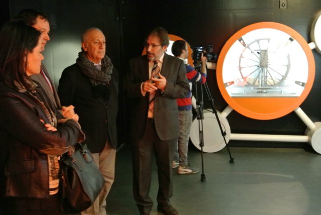 El concejal de Fomento, Roque Ortiz, Gerardo Cuartero, director de Área de Negocio  de CaixaBank en Murcia, José Albaladejo, director de Aguas de Murcia, y el comisario de la exposición Sergi Romeu han presentado esta mañana la muestra que se estructura en tres grandes ámbitos: ‘Agua, elixir de la vida', ‘Agua en la ciudad' y ‘Agua sostenible'.