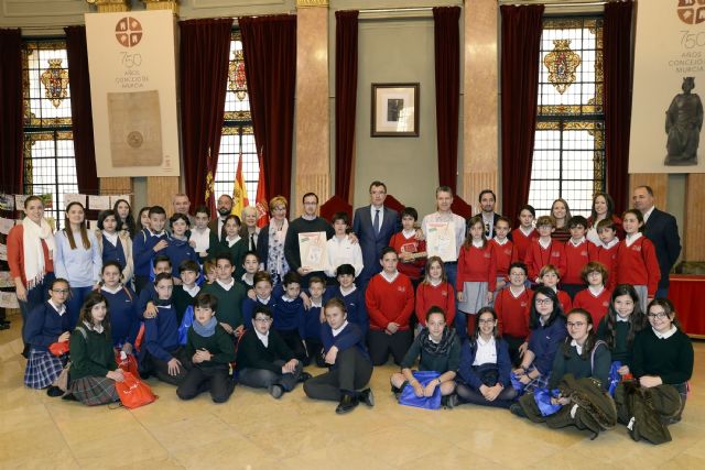 El alcalde de Murcia, José Ballesta, y la concejal de Comercio, Organización y Relaciones Institucionales, Maruja Pelegrín, hicieron hoy entrega de los premios del Concurso Escolar de Carteles por el Día Mundial de los Derechos del Consumidor, que se ha celebrado bajo el lema ‘Todos somos consumidores’ y ha permitido trasladar a las aulas la importancia de realizar un consumo seguro, responsable y sostenible.