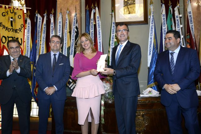 El alcalde de Murcia, José Ballesta, junto al concejal de Empleo, Turismo y Cultura, Jesús Pacheco, y miembros de la Corporación municipal, recibieron hoy en el salón de Plenos del Ayuntamiento al Gran Pez 2017, José María Martínez, y Doña Sardina 2017, María Pina, acompañados por el presidente de la Agrupación Sardinera, Gregorio González.