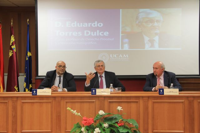 El ex fiscal General del Estado y profesor de Derecho Penal, Eduardo Torres Dulce, ha impartido una conferencia a los alumnos del Grado en Derecho y del Máster en Abogacía de la UCAM, en el marco de la jornada sobre cine jurídico que ha tenido lugar en el Campus de Los Jerónimos.