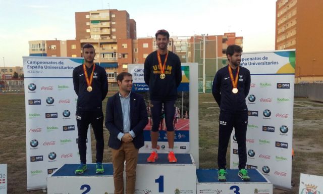 Con estas medallas, la UCAM afronta la jornada de mañana en primera posición del medallero de atletismo con quince metales: nueve oros (Ruth Beitia - altura, María Pérez - 5 kms marcha, Borja Vivas - peso, Álvaro Gutiérrez - 3.000 obstáculos, Úrsula Ruiz - peso, José Emilio Bellido - Triple salto, Miguel Ángel Sancho - altura, Carla Franch - pértiga y Miguel Ángel López - 10 kms marcha), cuatro platas (Emilio Martín - 10.000 metros, Cristina Ferrando - altura, Chiara Torrisi - 200 metros y Manu Bermúdez - 10 kms marcha) y dos bronces (Diego Ruiz - 10.000 metros y Benjamín Sánchez - 10 kms marcha).