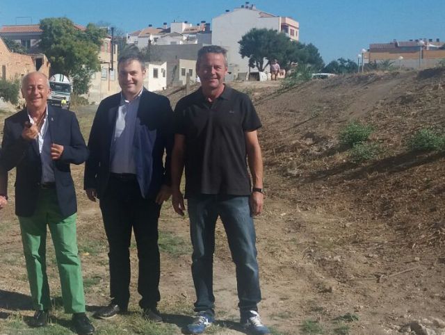 El concejal de Fomento, Roque Ortiz, y el comisario adjunto de la Confederación Hidrográfica del Segura, Sebastián Delgado, han visitado las obras que la CHS está ejecutando en la rambla de Churra para evitar los efectos de las crecidas de agua cuando llueve.