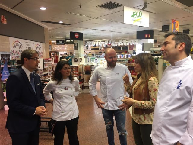 Durante la mañana los tres cocineros, acompañados de los concejales Jesús Pacheco y Rebeca Pérez, han asistido al Supermercado El Corte Ingles, que ha cedido los productos para su preparación, para recoger cada uno de los alimentos necesarios para dar sabor a una noche en la que cientos de jóvenes del municipio celebrarán la llegada del verano. Con ellos han estado también el subdirector regional de El Corte Inglés, Rafael Álvarez-Ossorio y el director del centro comercial de Avenida de la Libertad, Vicente Valcárcel.