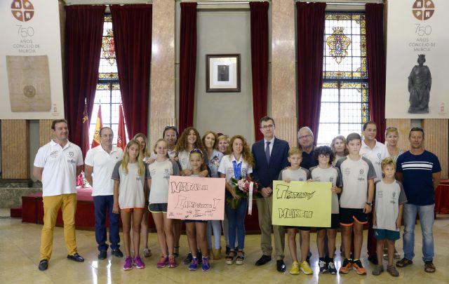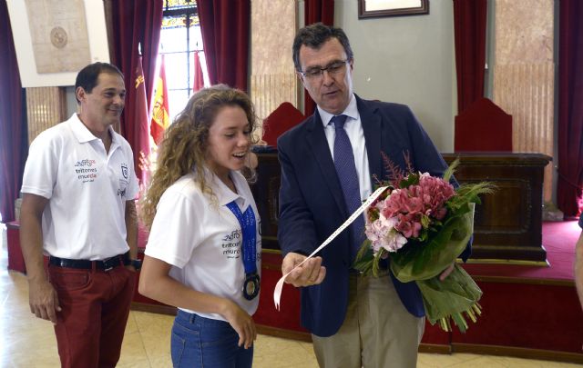 El alcalde de Murcia, José Ballesta, junto al concejal de Salud y Deportes, Felipe Coello, recibió esta mañana a la campeona de España de Triatlón en la categoría cadete, la joven Natalia Hidalgo, ganadora de la medalla de oro en la competición nacional disputada hace unos días en Gerona.