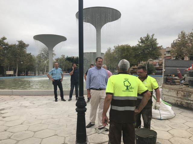 El concejal de Modernización de la Administración, Calidad Urbana y Participación, José Guillén, ha visitado esta mañana el Jardín de las Tres Copas donde se están desarrollando trabajos que forman parte del Plan Especial de Verano gracias al cual se llevarán a cabo cerca de 100.000 actuaciones en las zonas verdes de Murcia y pedanías.