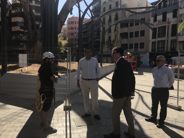 La Concejalía de Modernización de la Administración, Calidad Urbana y Participación, que dirige José Guillén, está instalando unos sensores en el ficus de la plaza de Santo Domingo y en los diez que se encuentran en el jardín de Floridablanca con el fin de monitorizar su estado en tiempo real y garantizar así la seguridad.