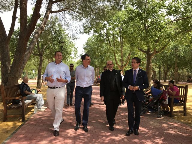 El alcalde de Murcia, José Ballesta, visitó hoy la explanada posterior del Santuario de la Fuensanta, donde el Ayuntamiento ha realizado trabajos de acondicionamiento del jardín, coincidiendo con la bajada de la Virgen de hoy a la ciudad y de cara a la Romería del día 12 de septiembre.